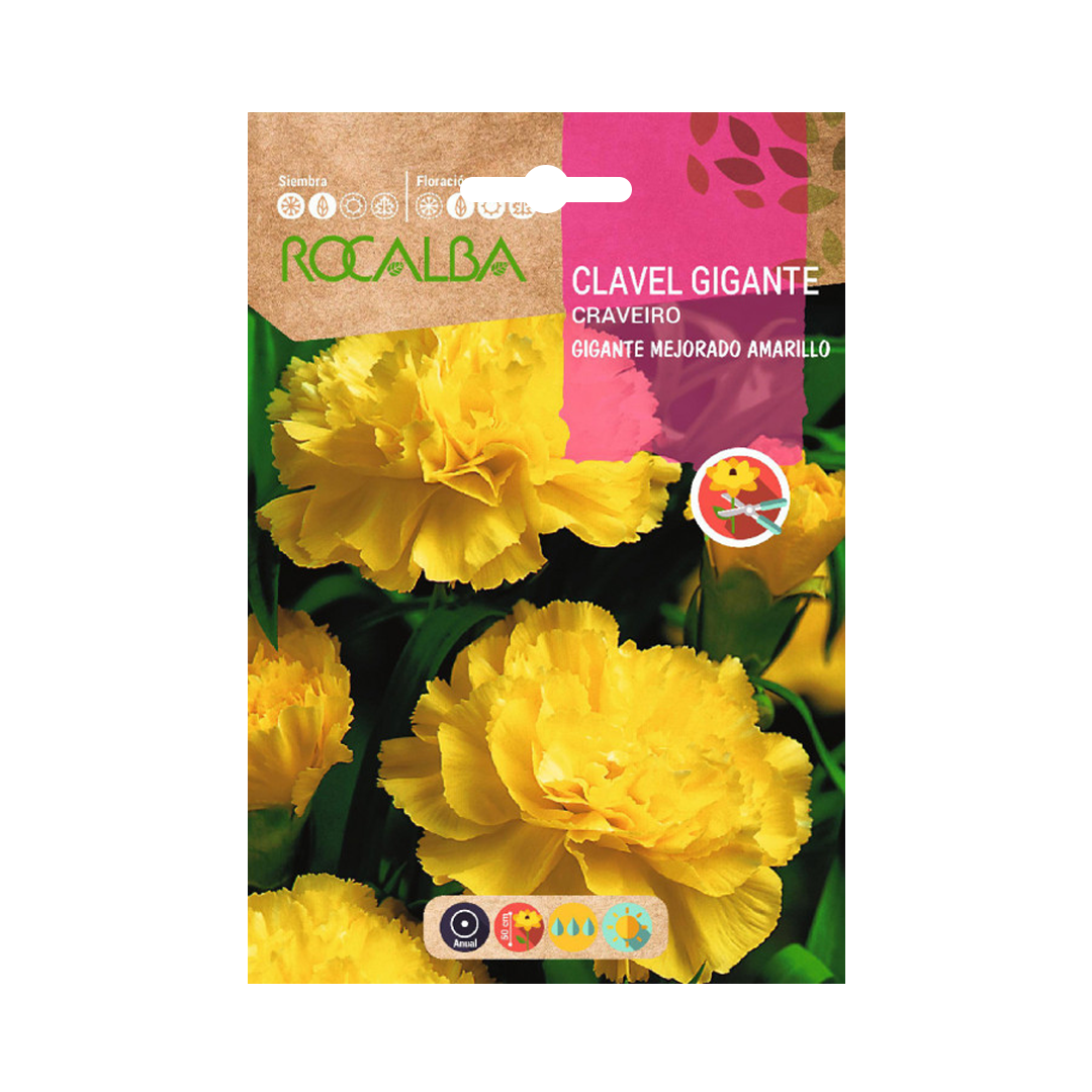 ¡Encuentra todas las semillas para acompañar a tu Clavel Gigante Mejorado Amarillo (hortalizas, flores y aromáticas) aquí en Rocaverde!